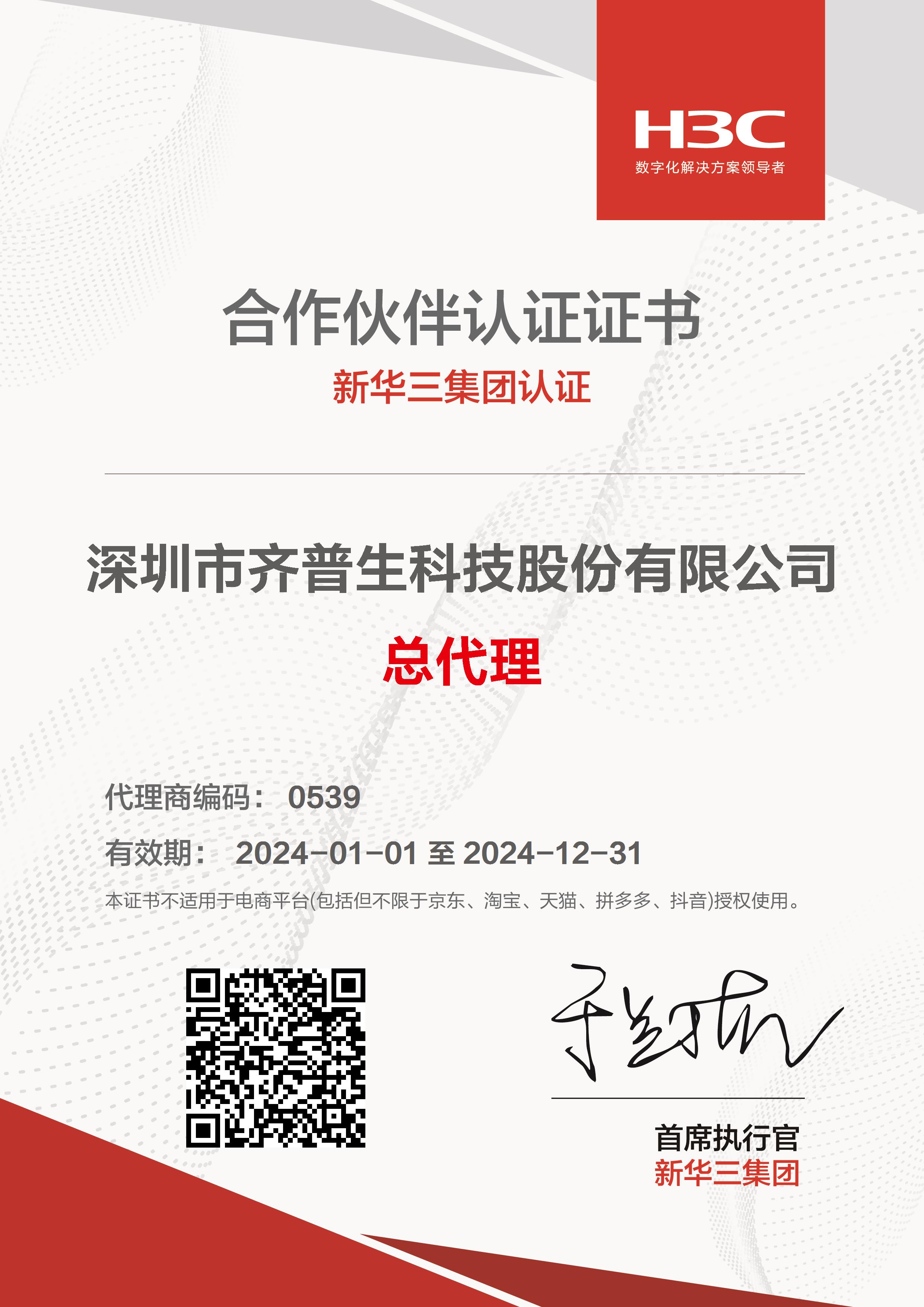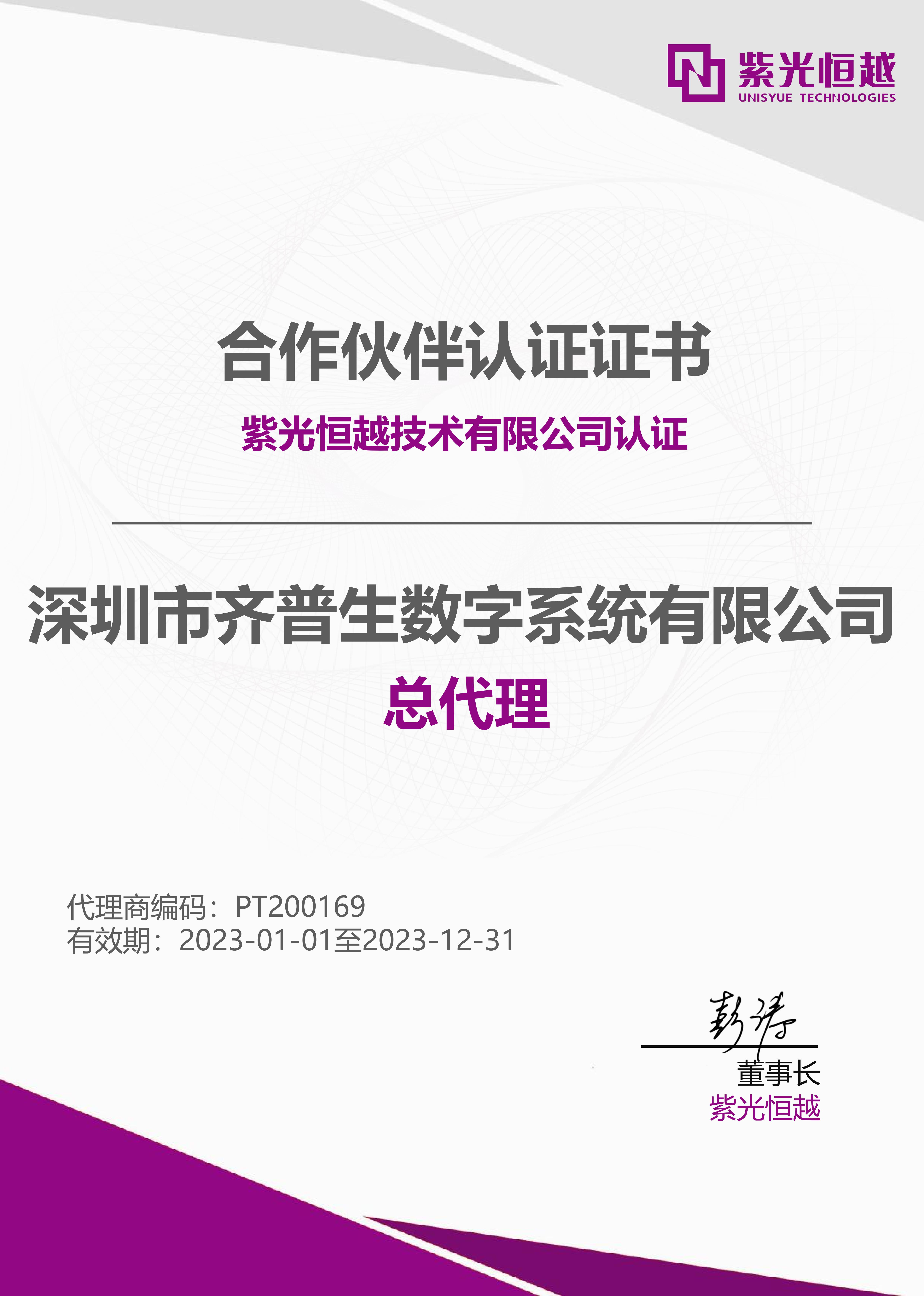 • 2024紫光華智一級(jí)渠道商(珠海公司)