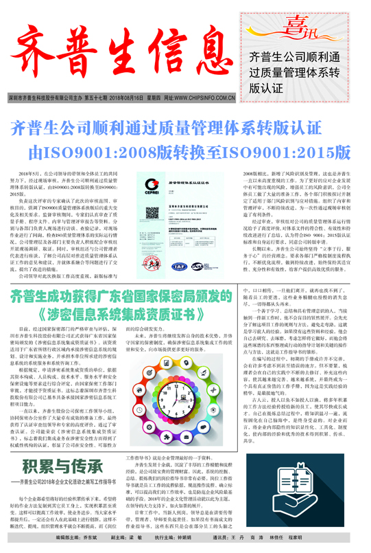 齊普生成功獲得廣東省國家保密局頒發的 《涉密信息系統集成資質證書》