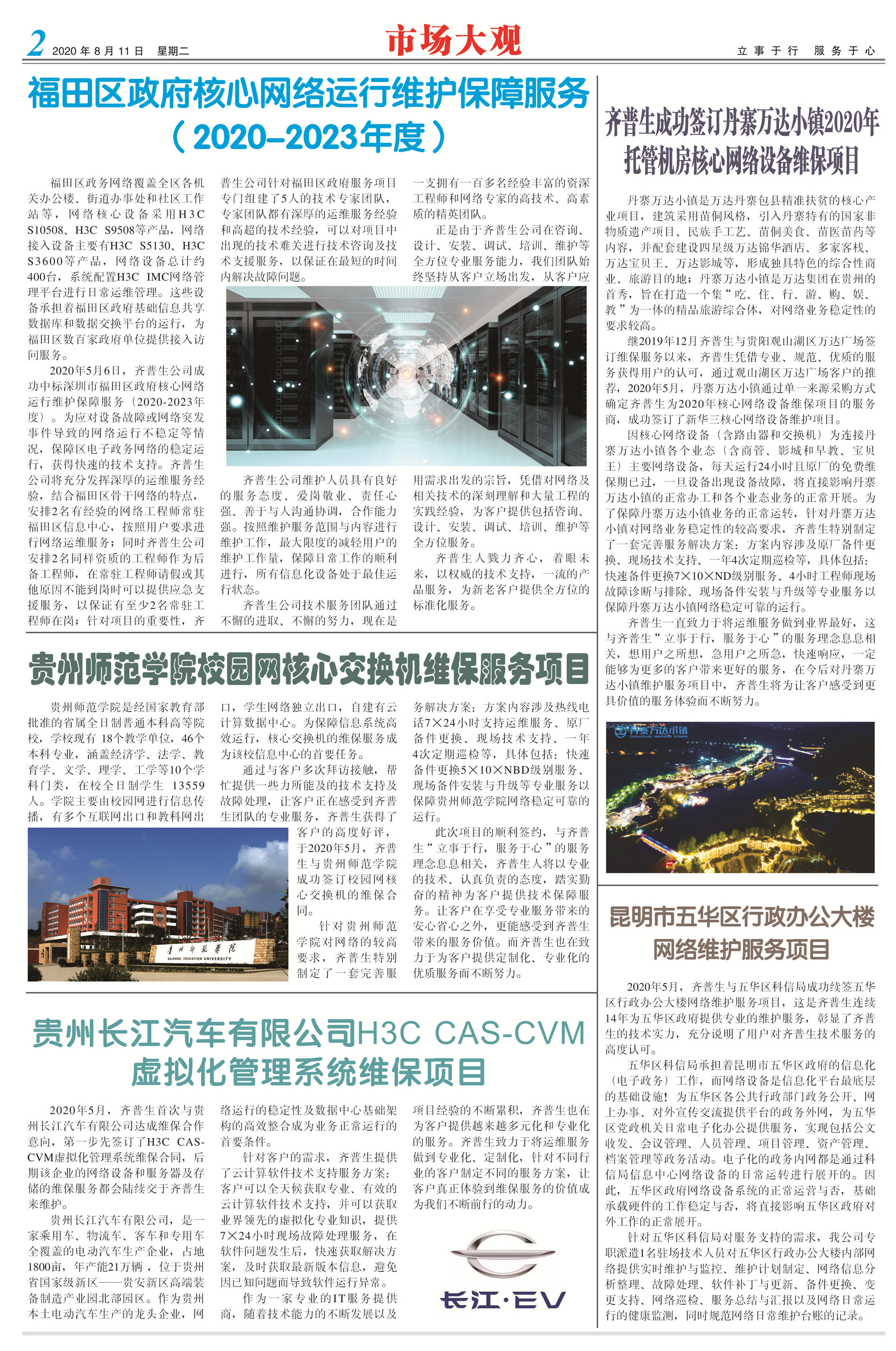 齊普生成功簽訂丹寨萬達小鎮(zhèn)2020年托管機房 核心網絡設備維保項目