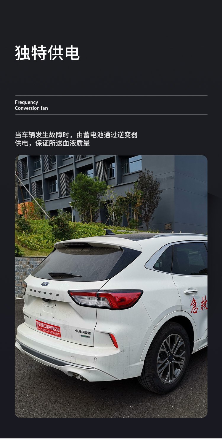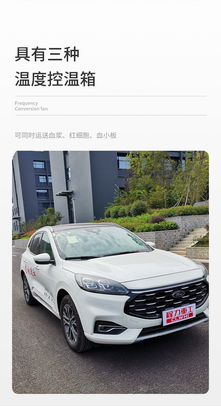“生命之舟”急救送血車/血漿運輸車獨特優勢:  一、“生命之舟”急救送血車是中華人民共和國工業和信息化部公告(詳見車輛生產企業及產品第234批)公布的國內一家生產的血漿運輸車。  二、“生命之舟”急救送血車具有三種溫度控溫箱,可同時運送血漿、紅細胞、血小板。   三、“生命之舟”急救送血車具有三種供電方式:   1、出車前可用220V市電供壓縮機工作,把送血箱溫度降下來,減少汽油使用量。2、運輸中主要由加裝的電池供電。3、當車輛發生故障時,由蓄電池通過逆變器供電,保證所送血液質量。  四、“生命之舟”急救送血車箱溫控制精確,可控制在設定溫度±1℃。   五、“生命之舟”急救送血車紅細胞與血漿箱溫度可根據送血需要互相轉換,或調成同一溫度。  六、“生命之舟”急救送血車血漿箱溫度可控制在-22℃。   七、“生命之舟”急救送血車具有數據 功能,可長期保存運輸中溫度控制情況,便于查根溯源。